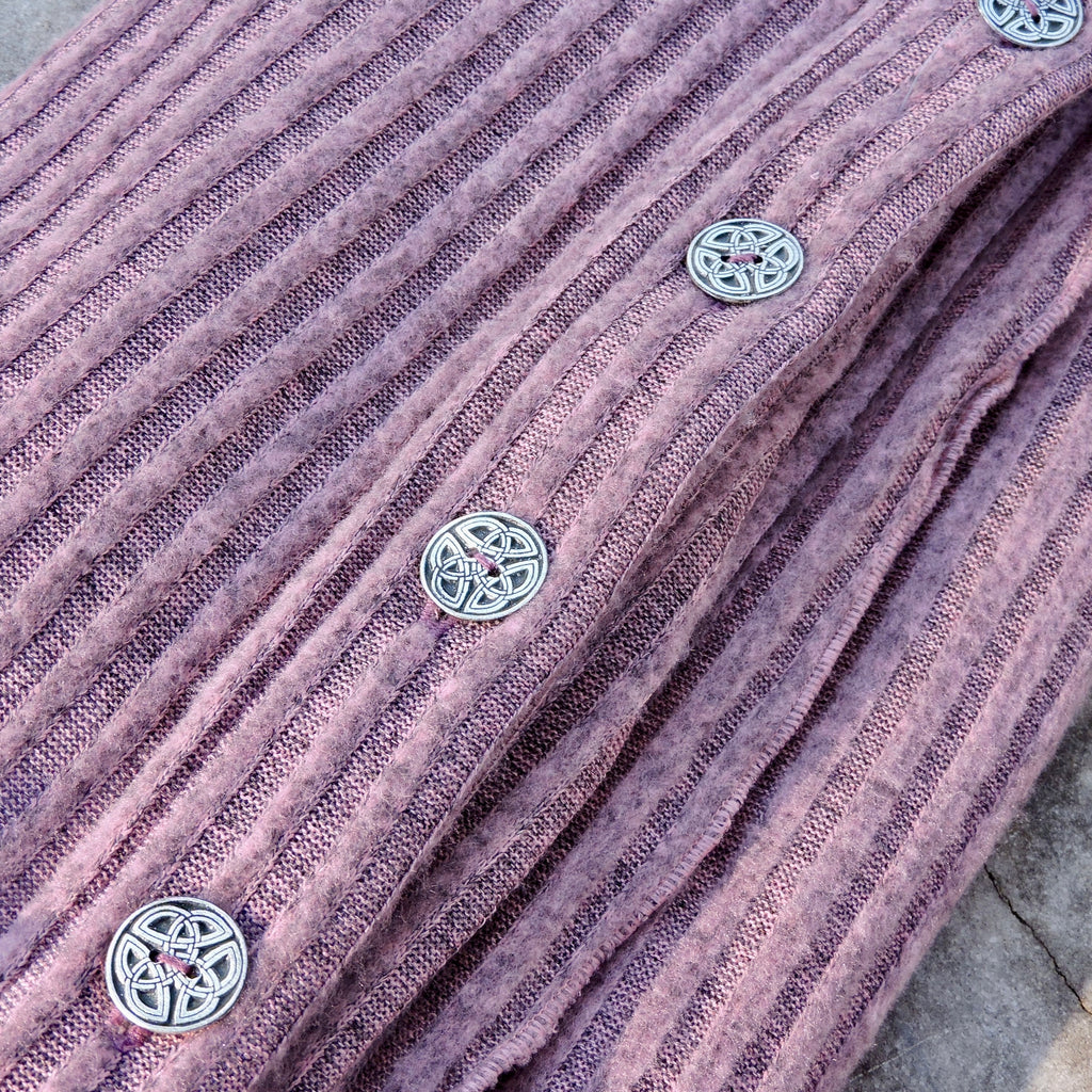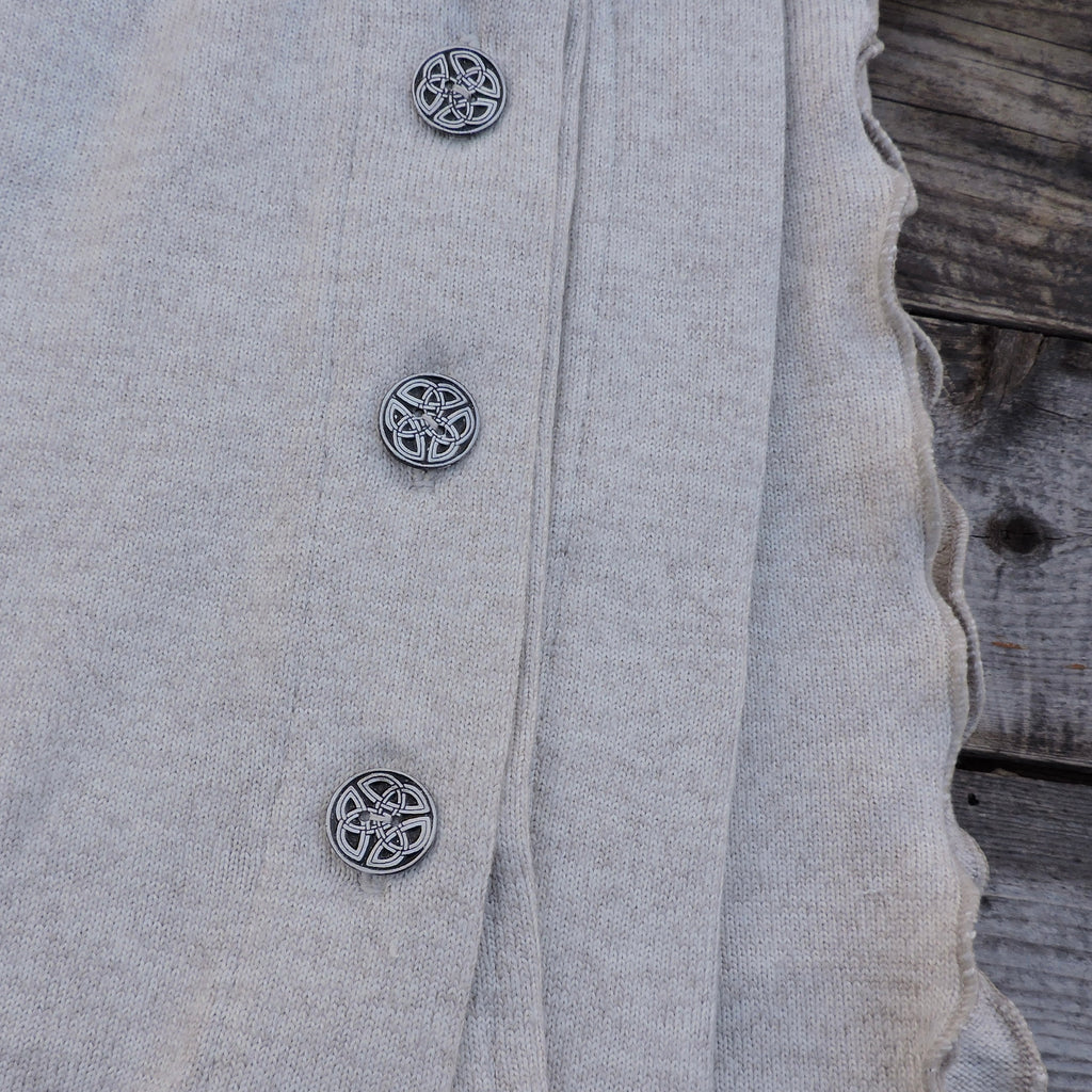 Our Knit Button Shawl shines with authentic Atlantic Pewter's Celtic Journey buttons, handcrafted exclusively for us in New Brunswick, Canada.