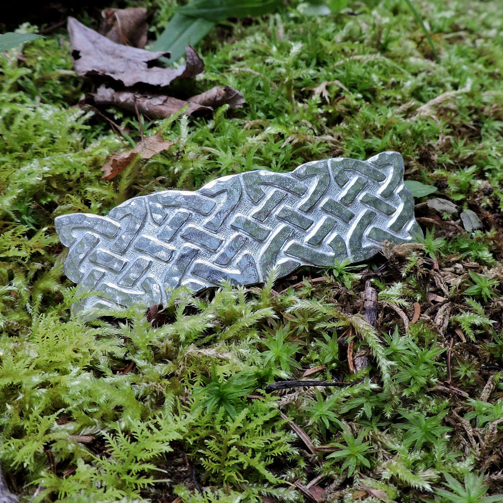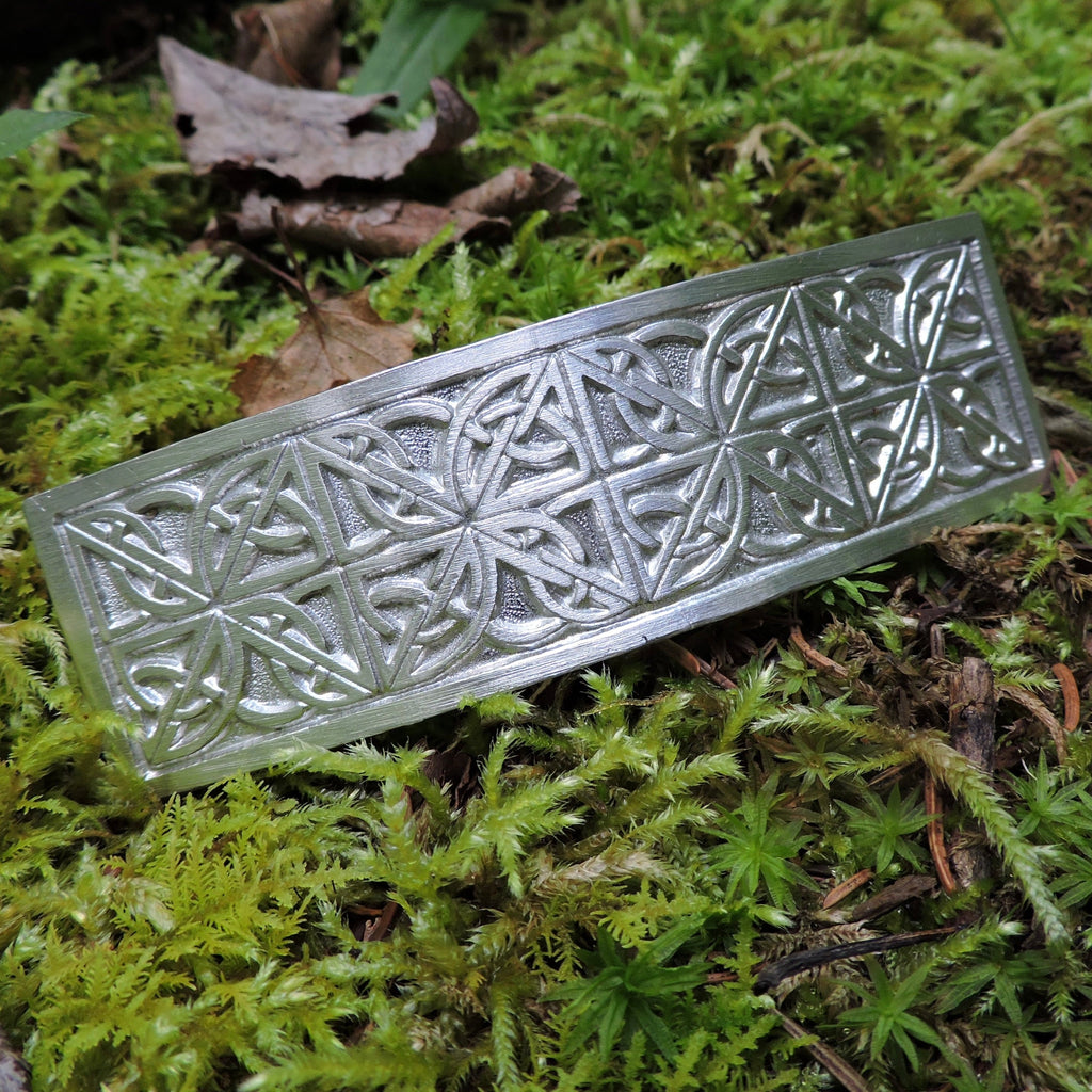 The Celtic knot work in this barrette is a beautiful design and the hammering provides several points where it catches the light on the surface.