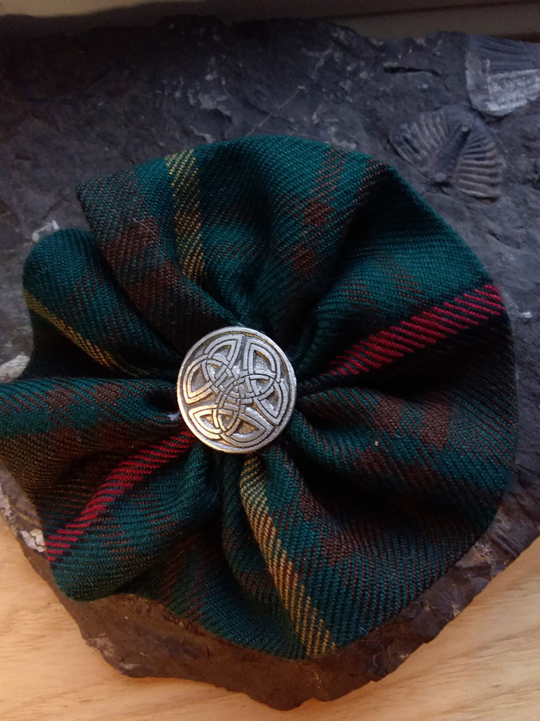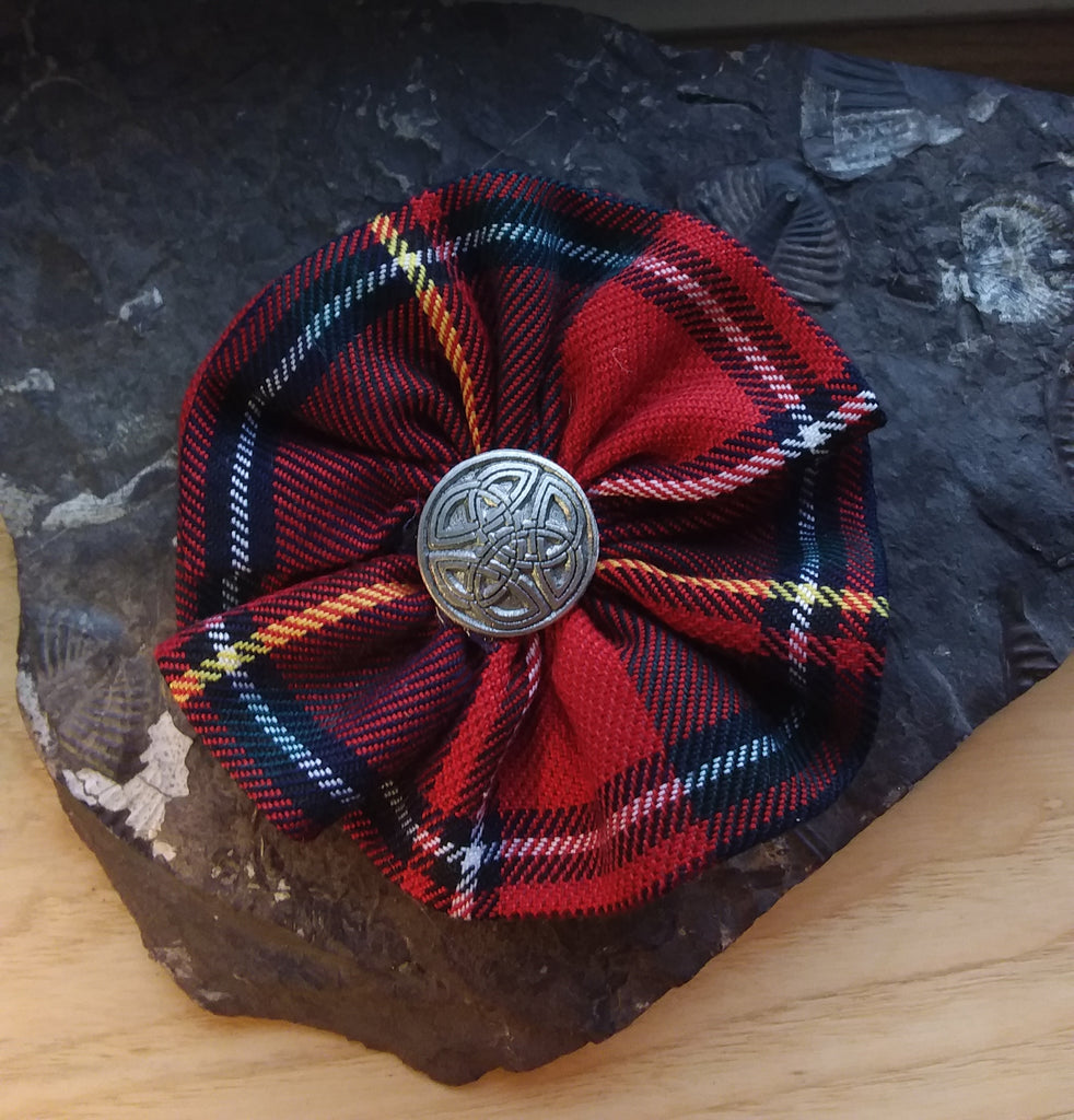 Our Tartan Rosette Brooch is the perfect addition to a scarf, sweater, or shawl to up your Celtic look.