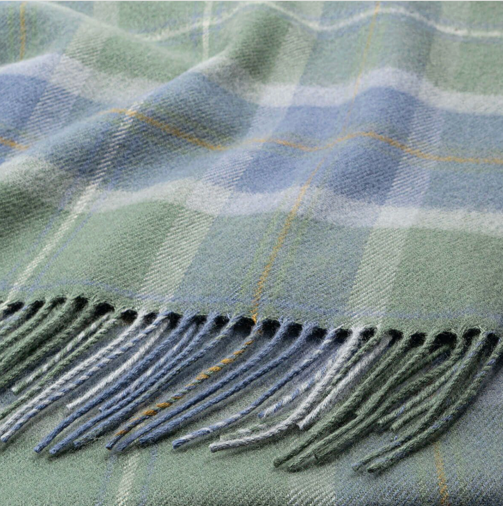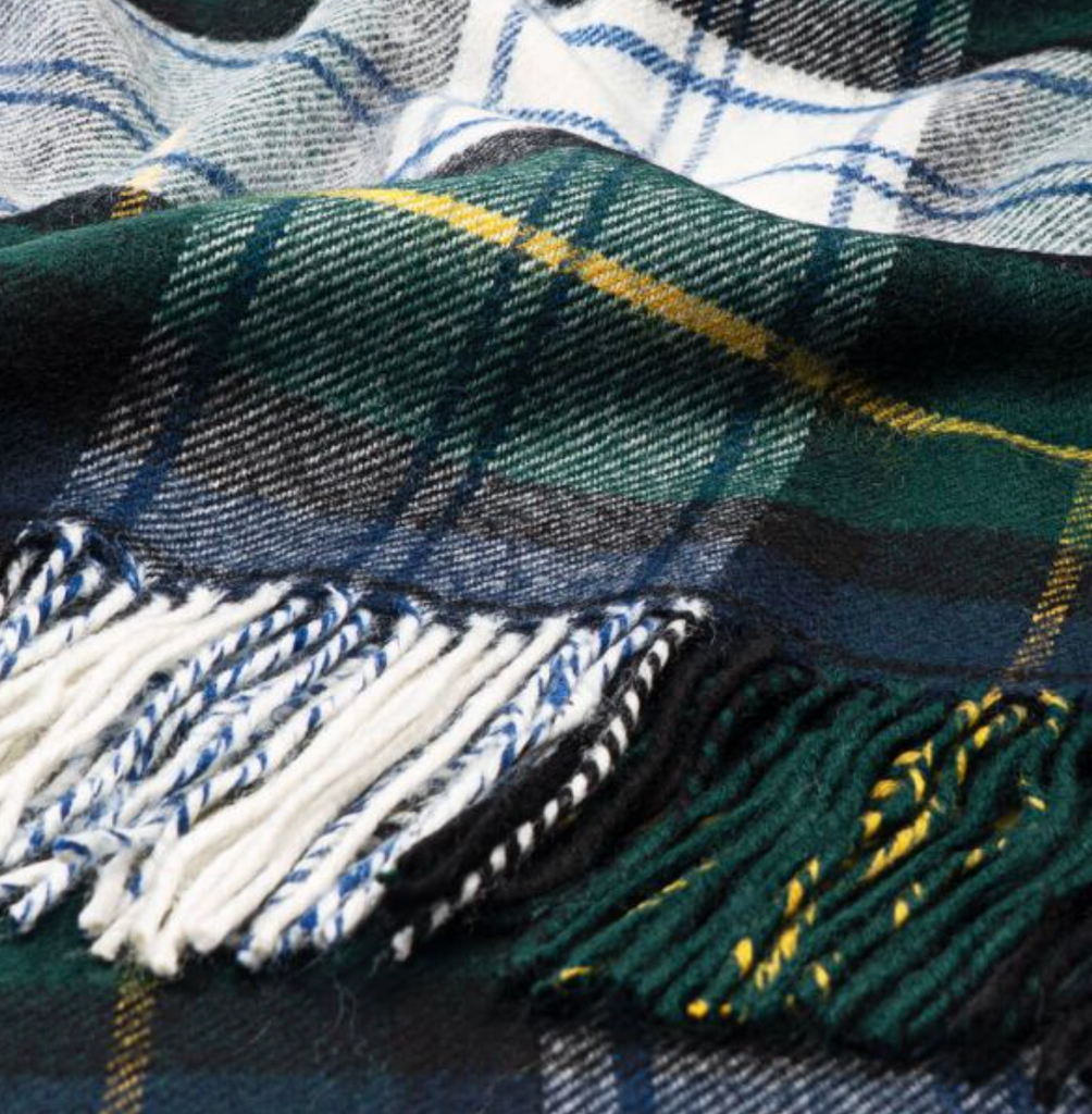 Tartan Button Shawls feature a pearled fringe and authentic pewter buttons, made exclusively for us by Atlantic Pewter.